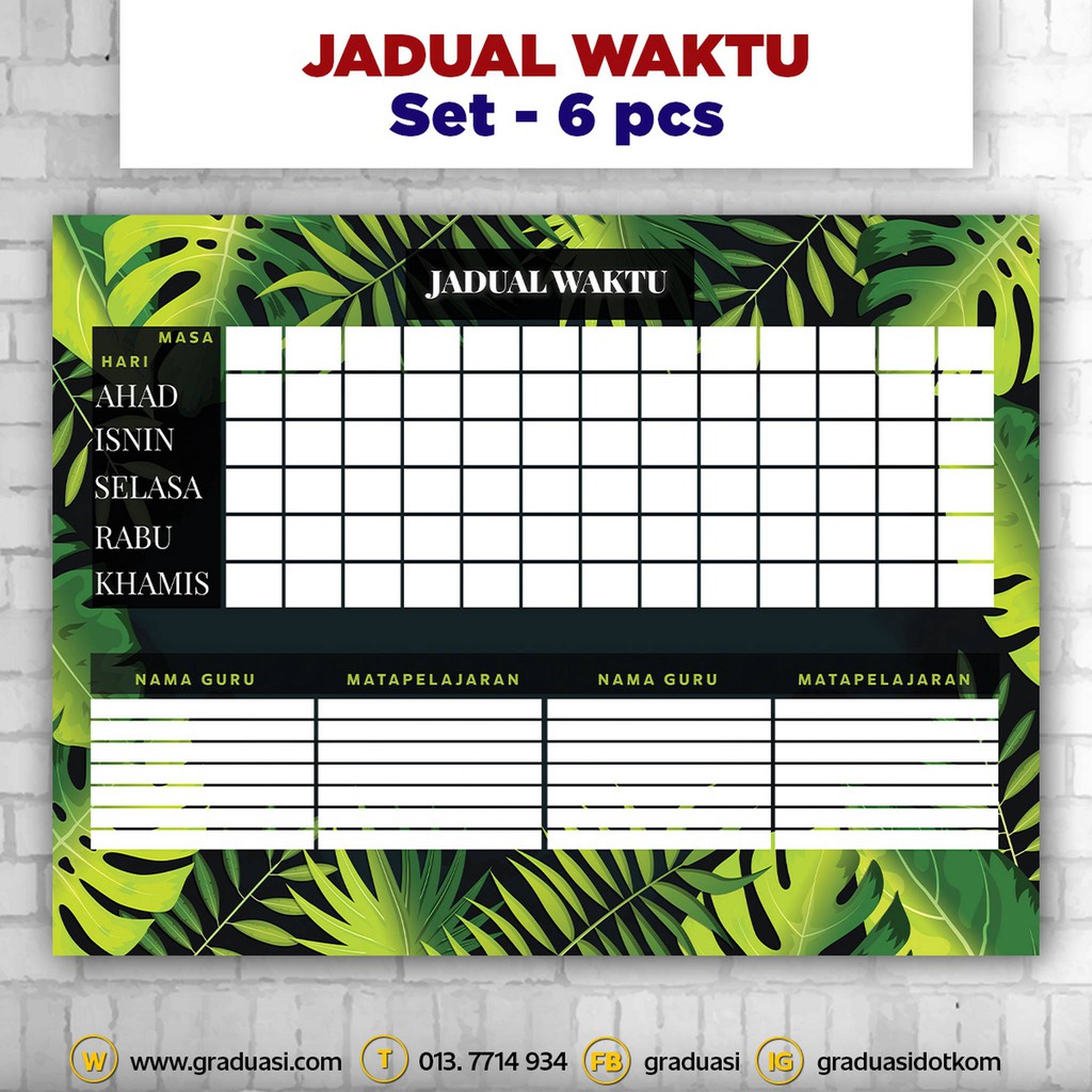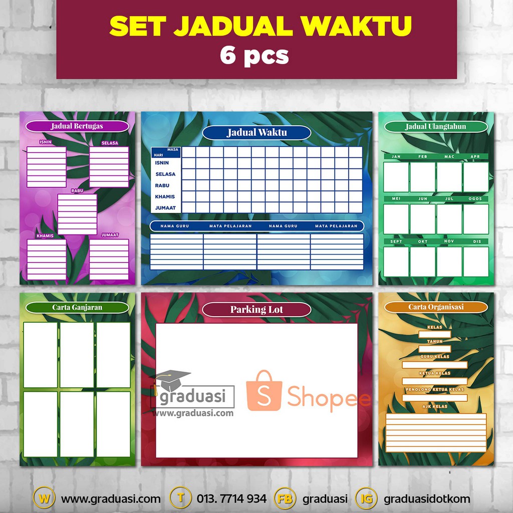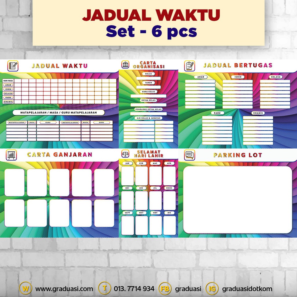 Jadual Waktu Kelas Set 6 Pcs Untuk Keceriaan Kelas Dan Keceriaan Sekolah Jw Shopee Malaysia